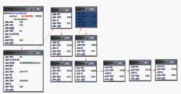 It comprises a processor module, custom loader and plugin(s) that disassembles Ethereum VM (EVM) bytecode and generates a control-flow graph (CFG) of a smart contract.