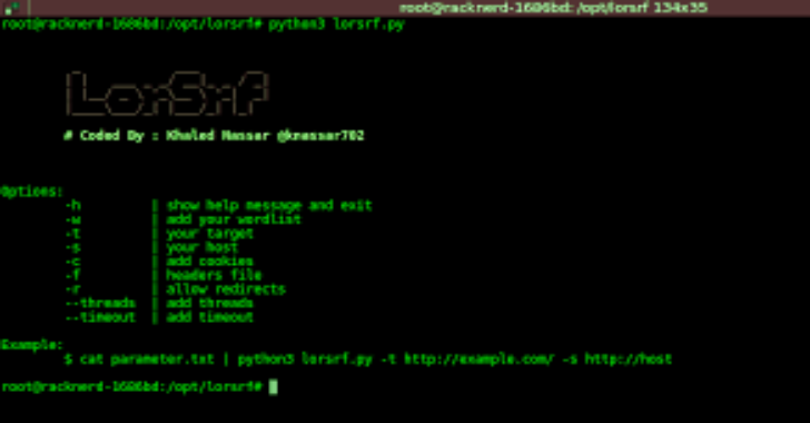 $cat parameters.txt | python3 lorsrf.py -f headers.txt -s ‘http://myhost.com’ -t ‘http://ssrf.hack.com’