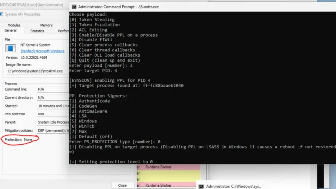 - ACL Editing: Bypasses process integrity or Protected Process Light (PPL) protections to access restricted processes.
